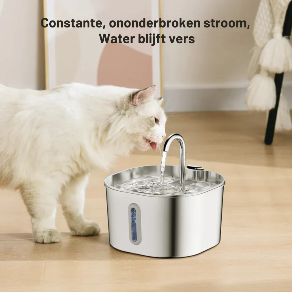 Ja, de fontein loopt 24/7 voor constante waterverversing en maximale zuurstoftoevoer. Dit houdt het water vers en aantrekkelijk voor je kat.